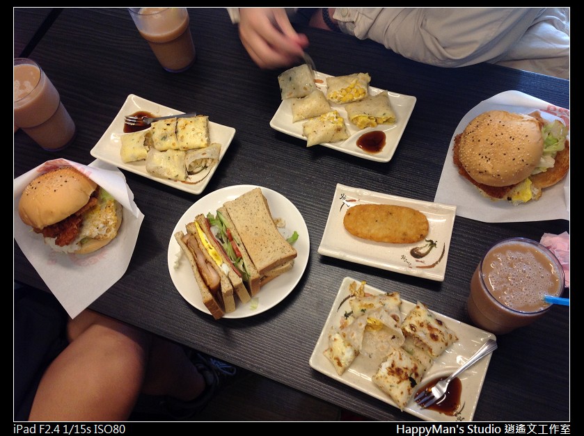 由上往下看滿桌美食,讓我好想天天來吃漢堡大師!其實它中西式餐點都有,我們三人點的都是套餐,所以都會附上一杯飲料和一塊薯餅,下次來點一般早餐店鮮有的餐點吧:P