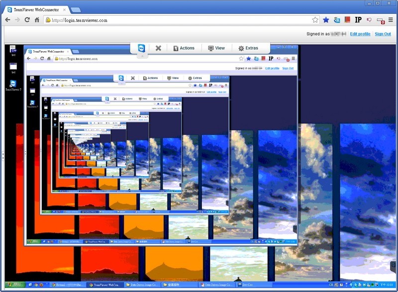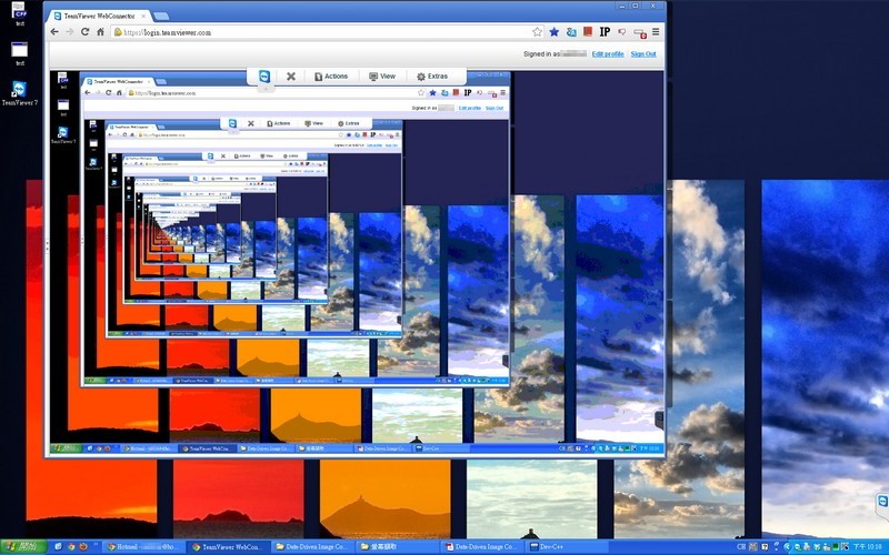 這張是連桌面也一起擷取下來的影像,可以看到它呈現無窮迴圈的樣子,之前使用Splashtop也有同樣的效果,就是這一篇Splashtop 遠端桌面連線最後的影像。
