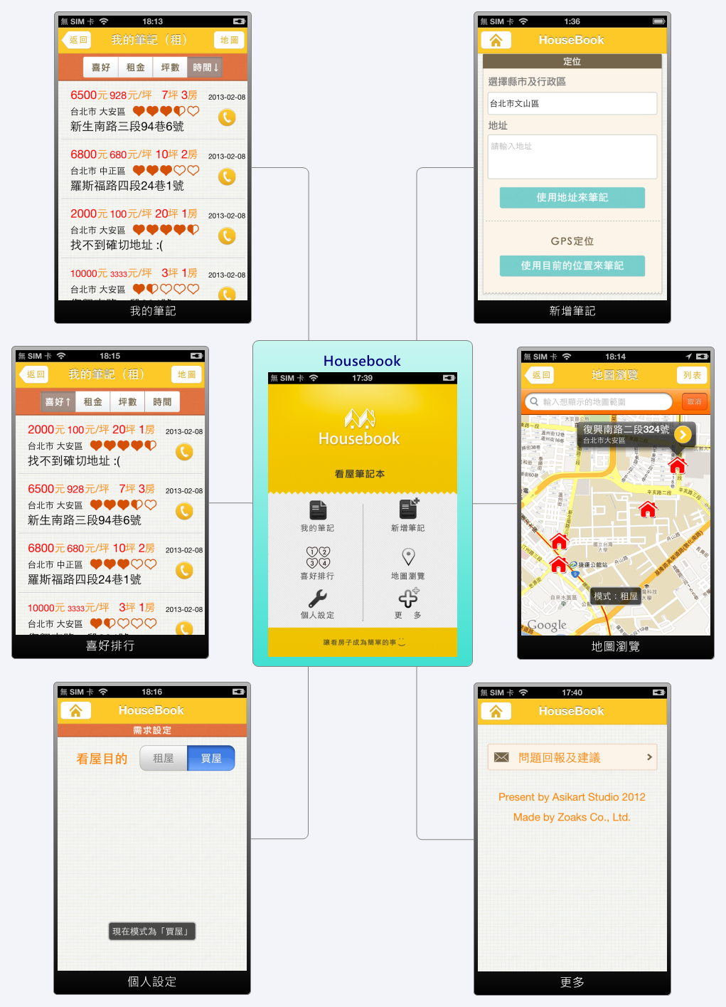 看完房子直接給評分,記下整體對於房子的印象,更提供依照喜好評分,價格,看屋時間排序,依自己喜歡的條件或是用地圖的方式瀏覽筆記!