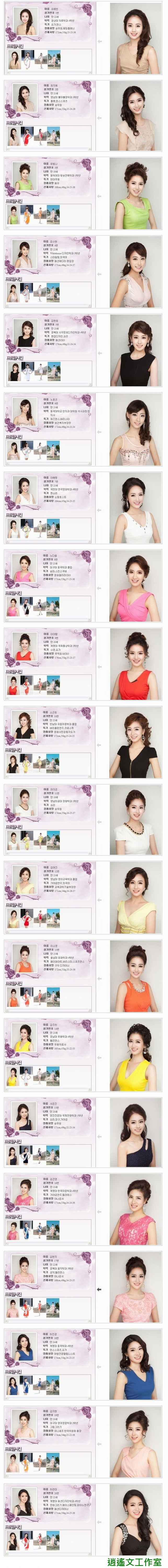 參考:韓國小姐2013:複製人全面進攻、2013年ミスコリア大邱エリアの候補者たち、整形無用!21名韓國佳麗素顏曝光、「韓國小姐」的臉到底有多相似?、Miss Daegu 2013 Contestants Face Morphing。