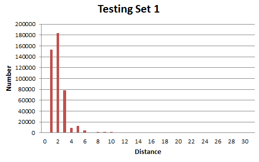列出距離在4(根號16)以內,發現某些距離(不只是2^n-1)會有0個的情況,表示找到的(x, y, z)無法符合該距離,畢竟已經用暴力法跑過全色彩空間。