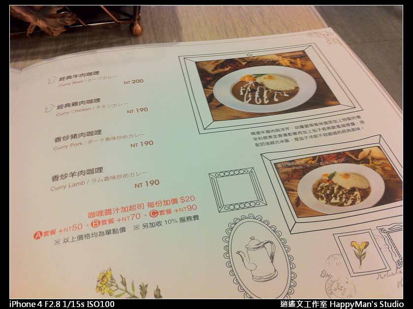 由於阿邊提早到場,所以就先行點餐,他的餐點是藍帶豬排咖哩小套餐,看起來真是美味阿~