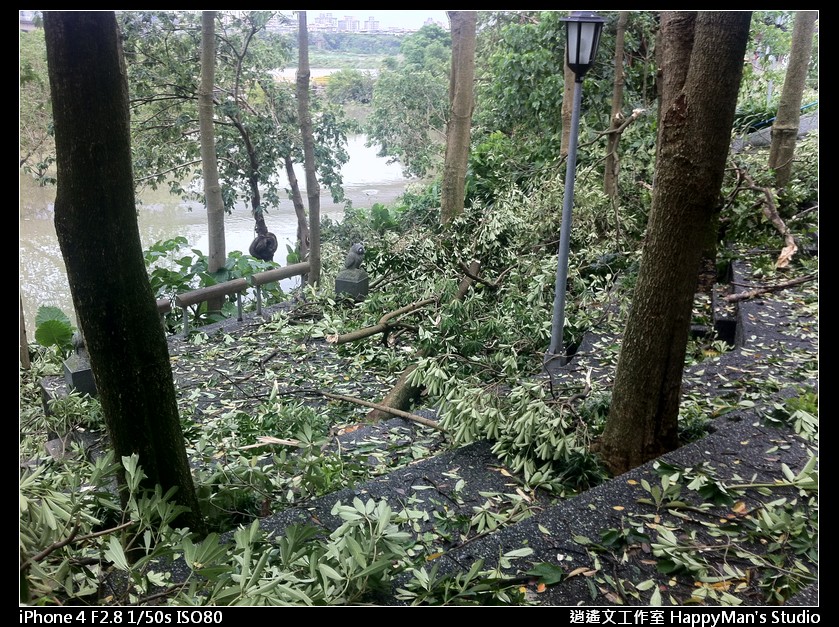 按耐不住性子,回房間換上運動服,帶著iPhone就往河堤出發,趁著還沒有清理的情況下記錄現場。蘇力颱風的水比想像中少很多,去年有淹到河堤的牆梯呢!