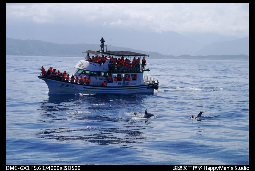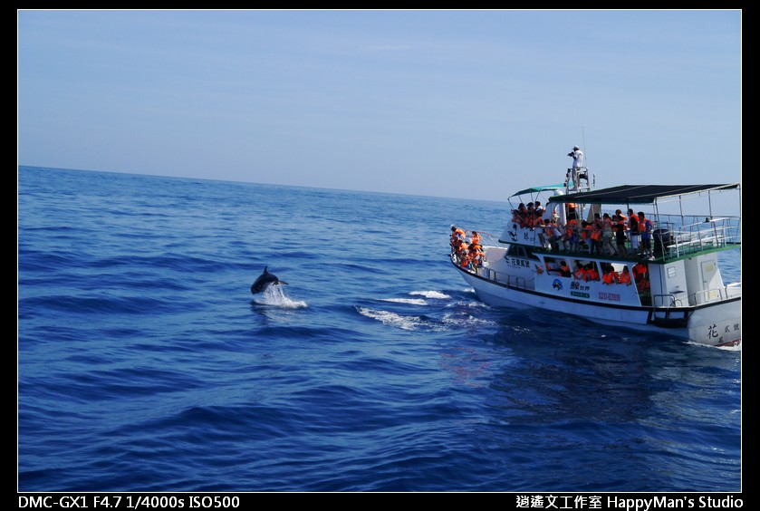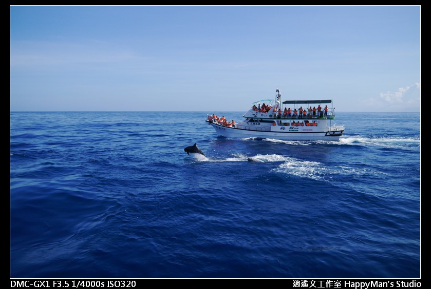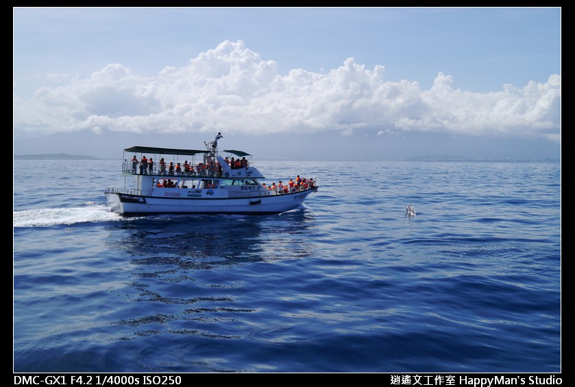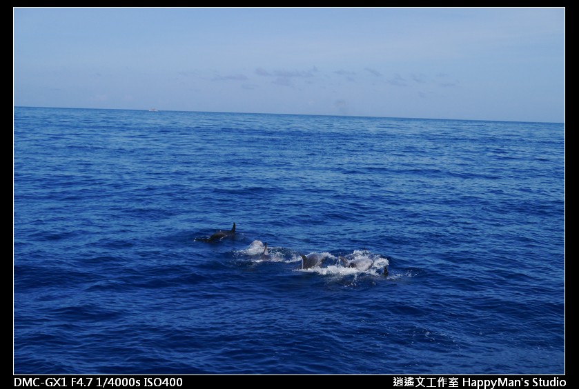 天氣晴朗之下,我把相機的性能發揮到臨離盡致,快門最快1/4000秒,ISO最低160,為的就是捕捉難得飛越海面的海豚~