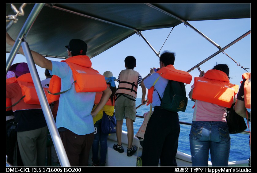 頭上大太陽曬,海上反射陽光,船頂只有一塊黑色布遮掩,在海上航行2小時,真的要注意防曬,還好沒有暈船,不過中暑讓我頭痛和肚子不舒服還真是難受呢……