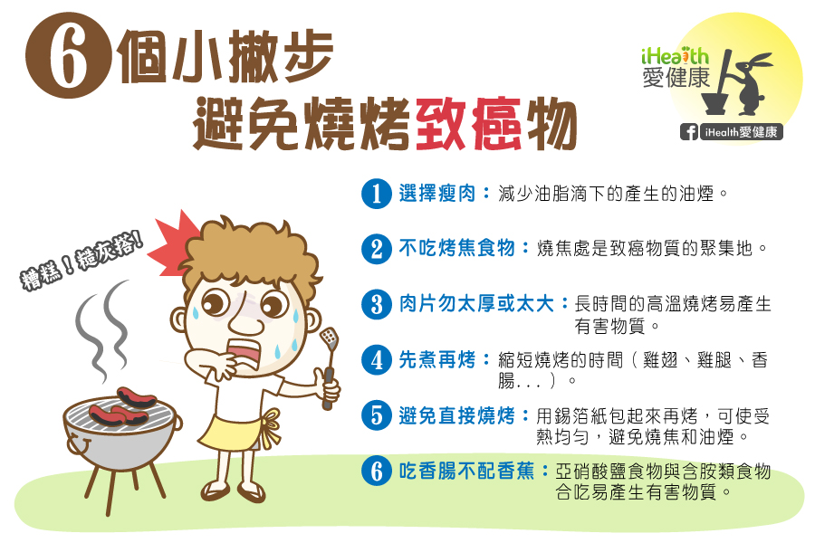 iHeath愛健康有一張淺顯易懂的圖示,文章還有詳細地說明燒烤食物會產生什麼樣的致癌物。
