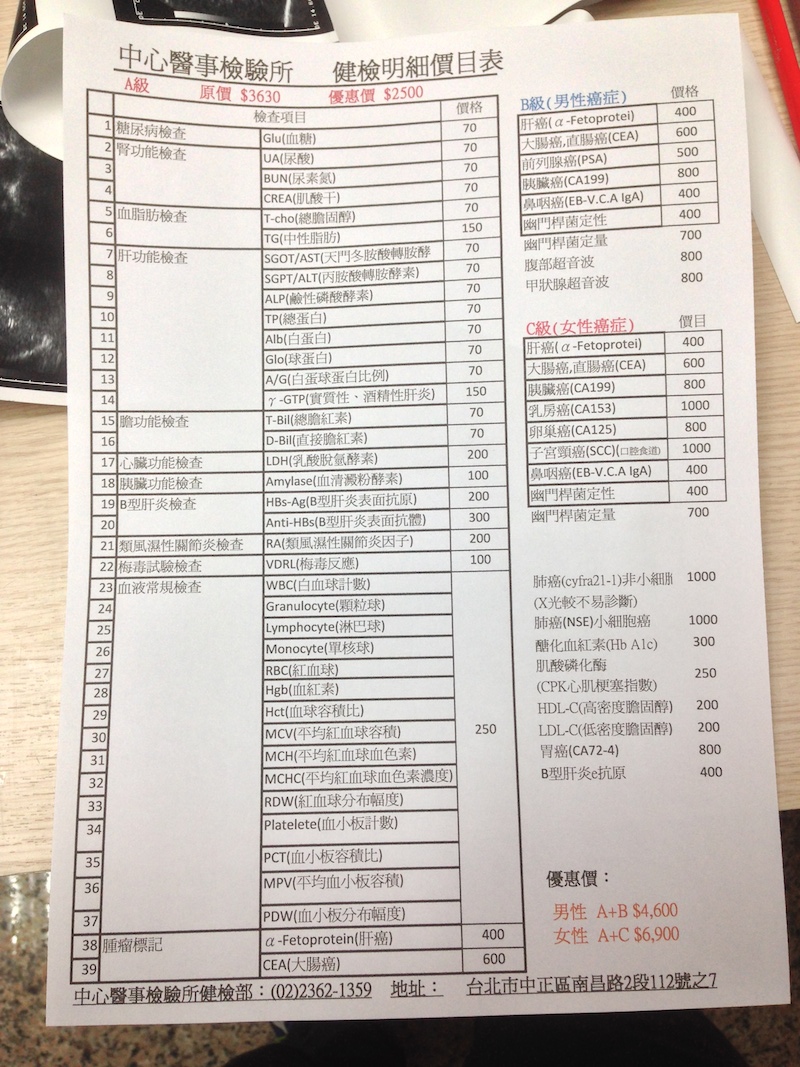最後幫他打一下廣告:中心醫事檢驗所。