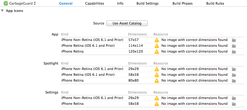 可以見到App Icons有分三種設置:App、Spotlight、Settings,當然我們iPhone螢幕有不同的大小,而作業系統也有不同的版本,此外還要考慮視網膜螢幕,林林種種加起來其實還算滿多的!過去我一直以為,我只要準備最大的就好了,猜想程式軟體會自動幫我縮圖呀~但實際上它只負責「顯示」,不處裡「縮放」,大概是因為要效能好,寧願花點空間放圖檔。