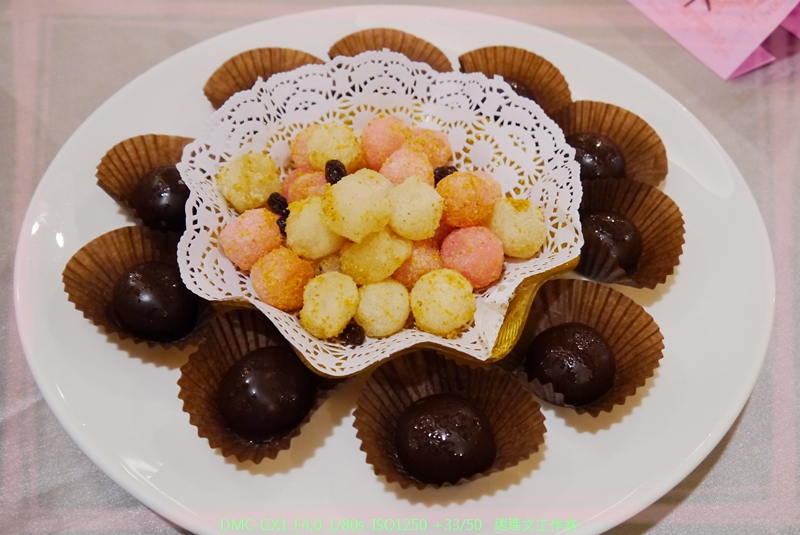 我總是喜歡拍攝接待桌上的婚紗寫真和旁邊的擺飾,很訝異盤子上的蛋糕是真的可以吃的!