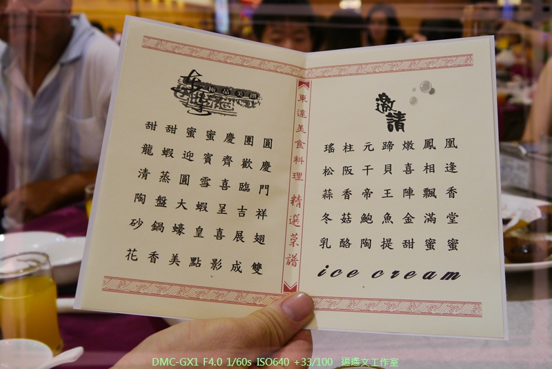 每桌近萬元的婚宴有著許多精緻美食,在此拍下乍看之下不知要橫看還是直看的菜單~