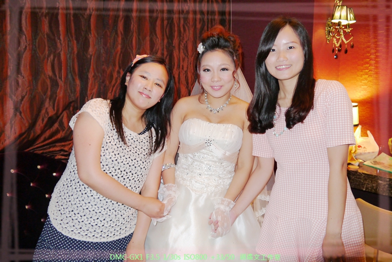 嗯⋯⋯我在整個婚宴中跑來跑去,捕捉著她這一生最美麗的一刻,配備或許不如專業攝影師,可是有著情感的作品感覺就是不一樣。回想四五年前,我們約在師大夜市一家漢堡店,當時的我還拿著BenQ DC E520,隨意拍就讓她想要當作臉書的大頭照,還讓人以為我是她男朋友~