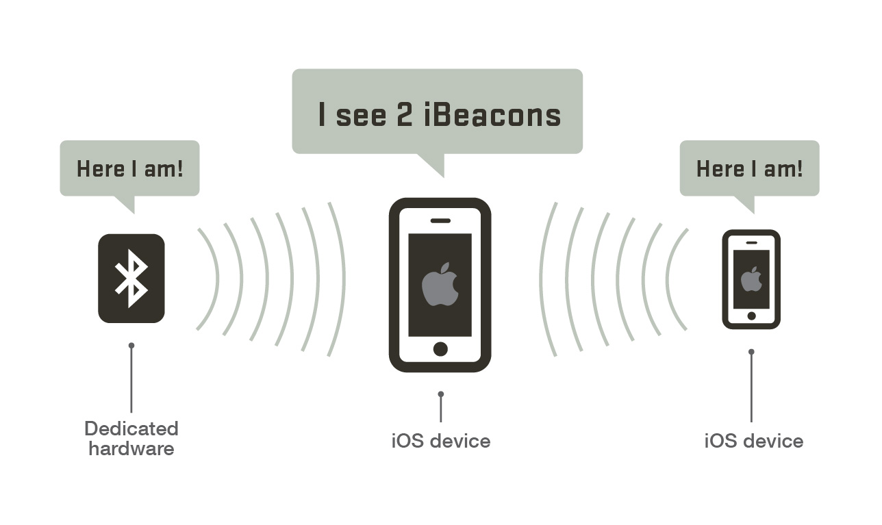 想要實驗 iBeacon 技術,蘋果從iPhone 4S和iPad 3就開始在移動裝置內置低功耗藍牙技術,因此幾乎每一部較新的iPhone和iPad都可以成為iBeacon接收器或發射器。