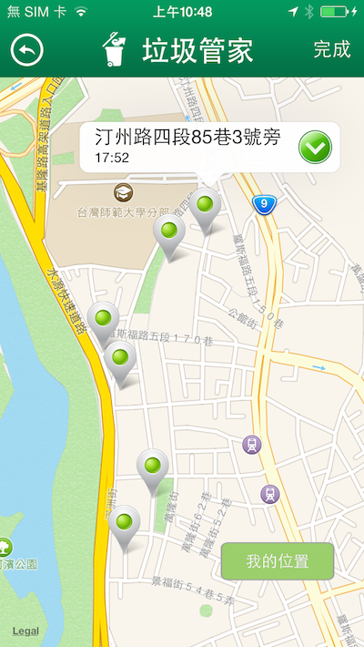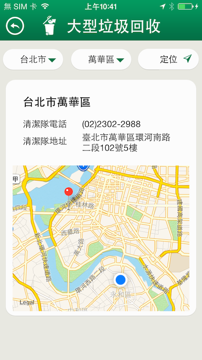 註:目前提供台北市、新北市和高雄市的垃圾車地點與時間查詢,未來政府公開越多開放資料,我們會陸續更新App的資料庫。