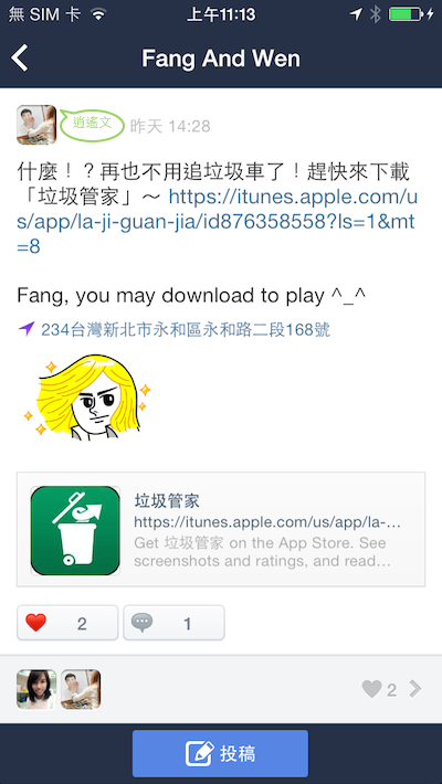 如果我們覺得「垃圾管家App」很好用,那麼可以順手將此App推薦給親朋好友,讓他們未來無論身在何處,倒垃圾不再是件麻煩且困擾的事情!