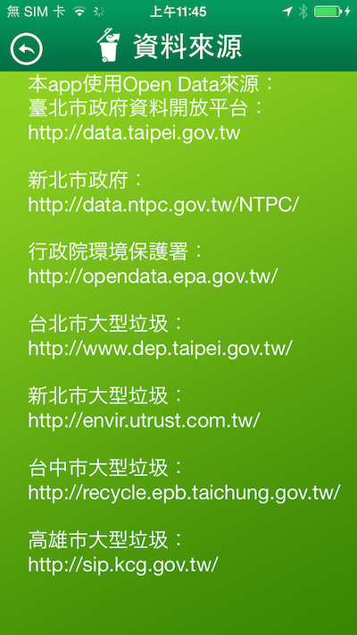 垃圾管家App使用Open Data來源: