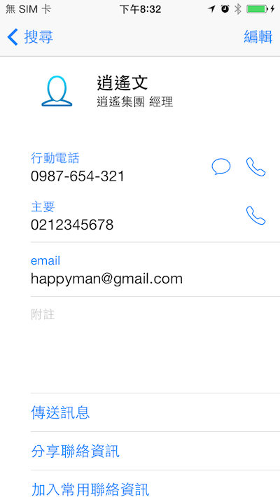 後來客戶想改以手機號碼來判斷是否已加入通訊錄,也不是不能這麼做,只是有人可能沒有手機號碼(雖然這個時代不太可能),好的使用者體驗應是以人名為主(儘管可能有同名同姓),畢竟我是加你這個人,其它聯絡資料如手機號碼、公司號碼、電子信箱從缺沒關係,之後還能加上去。