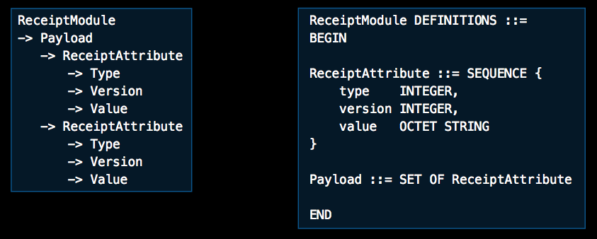 ASN.1 抽象語法標記(Abstract Syntax Notation One):ASN.1是一種ISO/ITU-T標準,描述了一種對數據進行表示、編碼、傳輸和解碼的數據格式。它提供了一整套正規的格式用於描述對象的結構,而不管語言上如何執行及這些數據的具體指代,也不用去管到底是什麼樣的應用程序。