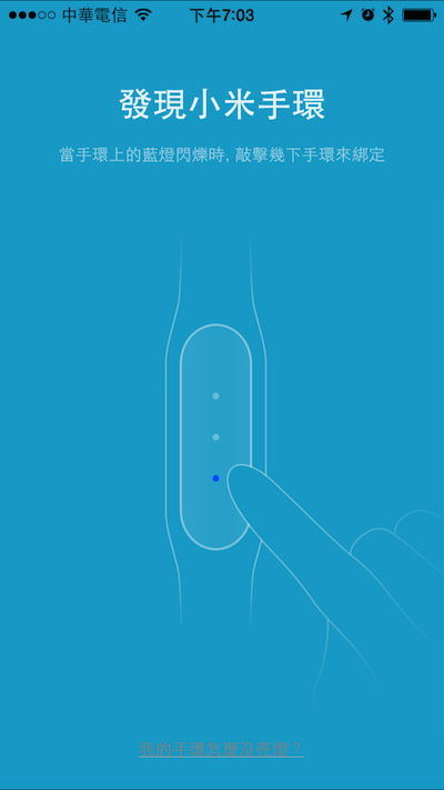 手環感應器主體完全沒有按鈕,但卻默默地持續運作,我們只要打開手機小米手環App,用藍芽去找尋與配對即可使用!