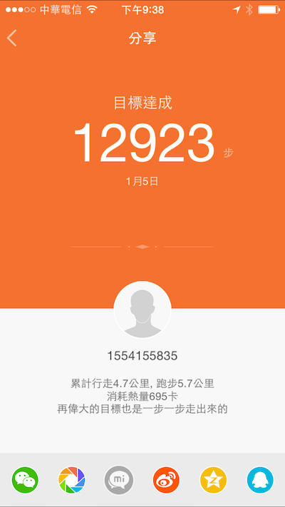 話說,小米手環iOS App曾經有個bug,就是2014年只能顯示一天的紀錄,這個bug讓使用者以為過去的紀錄消失不見,還好2015年1月5日有更新,讓我12/30和12/31兩天的紀錄都回來嚕~是的,我是從12/30開始配戴手環,當天晚上就去跟超慢跑成員分享小米手環,結果居然給我「落氣」!