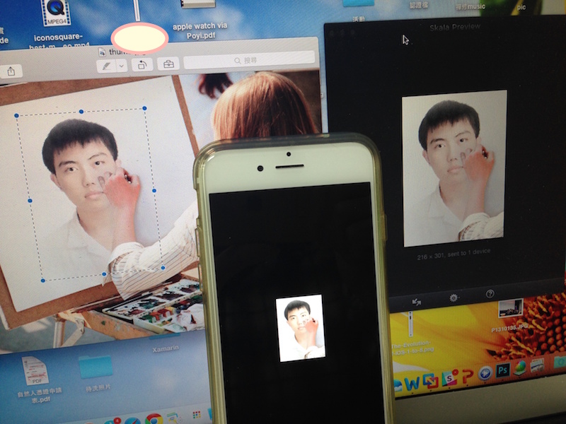 我以為只能整張圖預覽,沒想到在編輯時也能即時預覽,而且不限定在PhotoShop上,任何可以選取圖檔的軟體,圈選後複製,切換到Skala視窗,同樣可以在裝置上預覽效果呢!