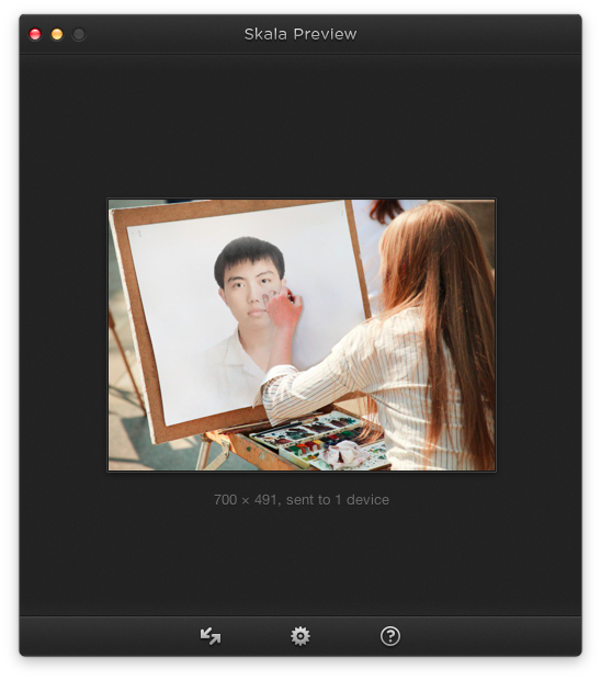 最簡單的使用方式是拖曳圖檔到Skala視窗裡,不到一秒鐘,影像就傳送到設備上給你看囉~