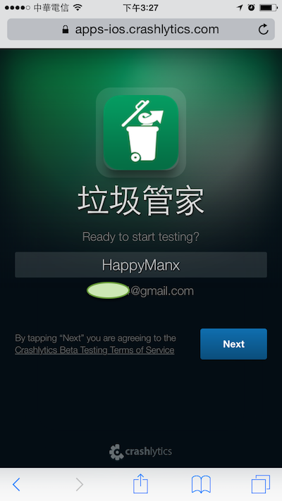 這篇是要教導測試人員如何使用Crashlytics,開發人員只要將測試人員的E-mail登錄進清單,測試人就會收到邀請信,接著只要跟著指示做,就能順利安裝版本。