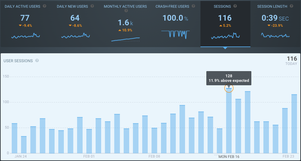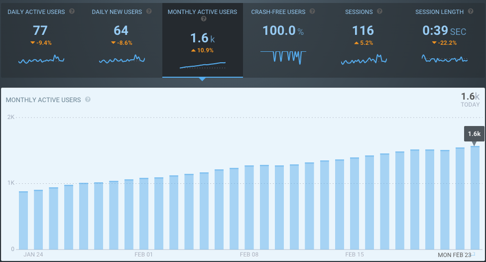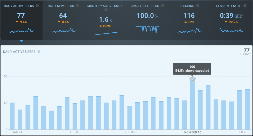 接下來的數據都會展現最近一個月以來的數據。首先是每天活躍使用者: