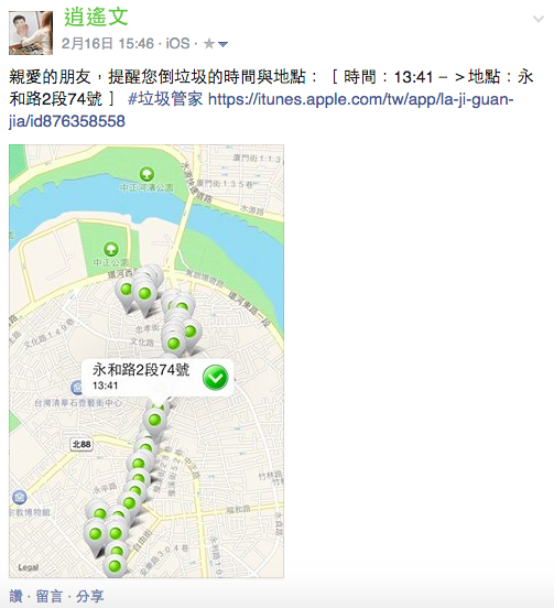 最近資訊界都在喊大數據(Big Data),其實這些統計數據就是其一了!大數據不貴在多,而是貴在有價值,像是知道某個事件如我的「失手」,讓使用者數目增加,這表示我只要多分享些,就能引來更多使用者,當然我是要使用者主動分享,相信應用型App多了分享的功能,會有更多人來使用垃圾管家:)~