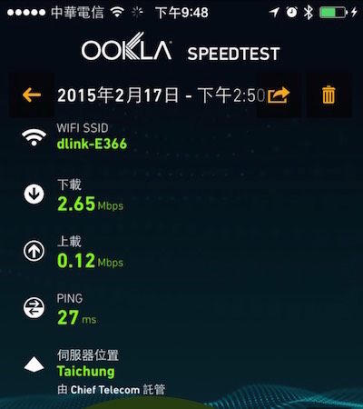 我把無線分享器安裝在一樓客廳,手機實際測試有2.6M,二樓房間有0.8M,三樓阿弟新房間有0.4。