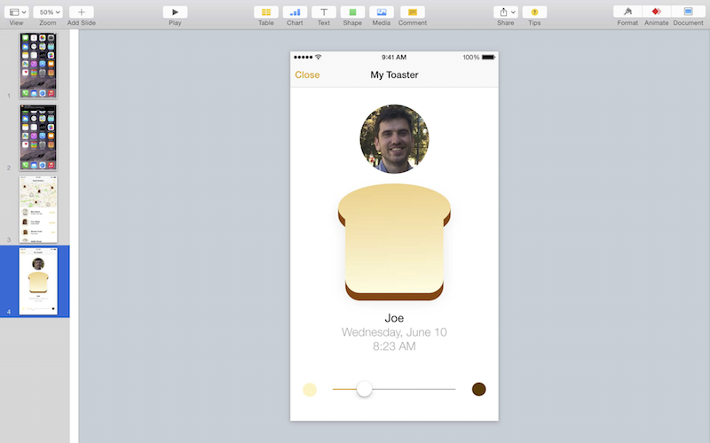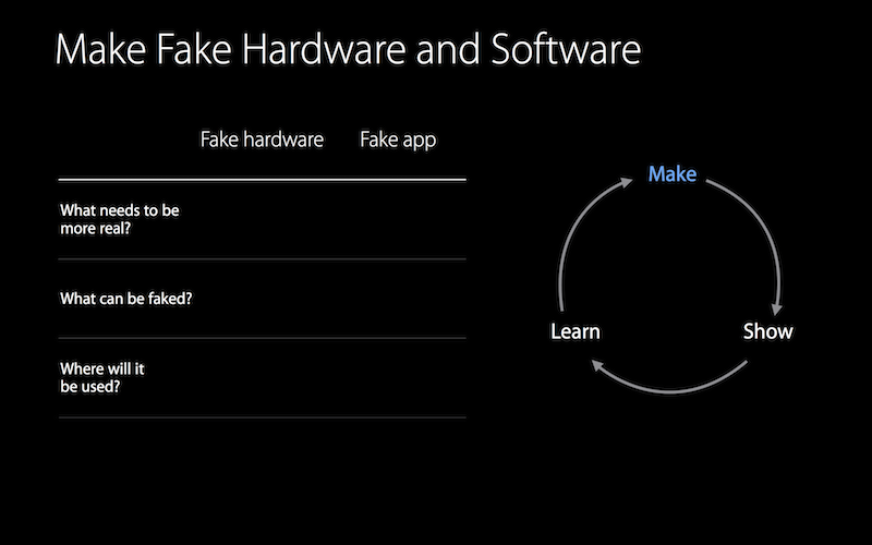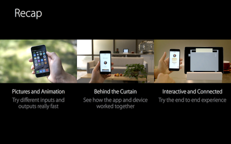 我們可以用簡便的方式,也就是身邊有什麼工具就拿來用,比如使用Keynote來製作手機App介面,甚至也能做硬體示範畫面,透過設定動畫的方式來呈現給使用者。