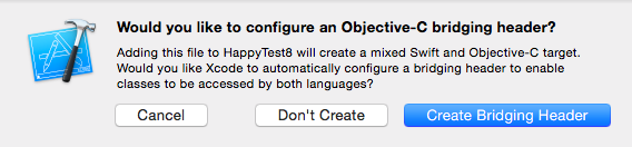 表示要幫你自動建立Bridging Header,可以看到生成HappyTest8-Briding-Header.h,此為固定格式,我在裡頭加了: