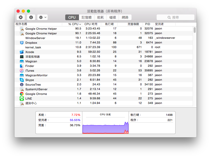 平常我工作多是使用Xcode來寫iOS App,照理說最會使用到CPU的角色就是它!