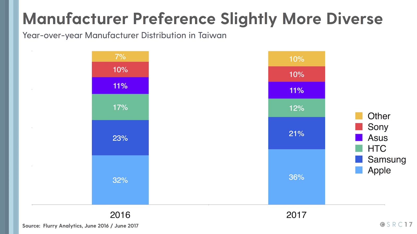 在台灣使用的智慧裝置,Apple品牌的裝置成長最大呢!看來對身為iOS App開發者的我越來越有利:)~