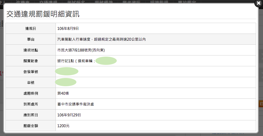 想要查詢是否有罰單要繳,可上-監理服務網-交通罰鍰查詢及繳納。心想都已經三個禮拜,我媽才在台中的加收到罰單,該不會之後我會連續收到同一路段罰單!?畢竟我那時段還會不自覺加速,是也時常跟著前方車輛減速,才慢慢覺知到這附近一定有測速照相機!