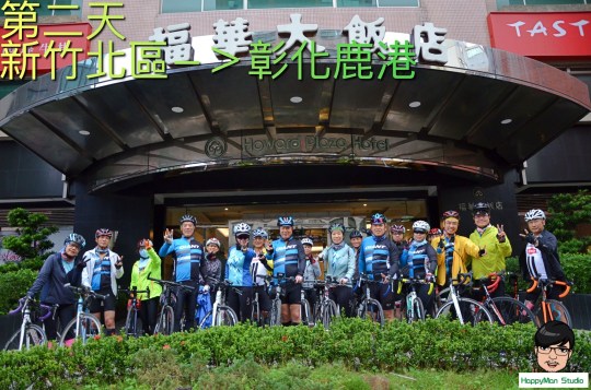 首先這一張是第三天在雲林西螺大橋下所拍攝,當時我們亦禾團穿隊服,是件非常粉紅黑的車衣,也成為證書中的紀念相片。
