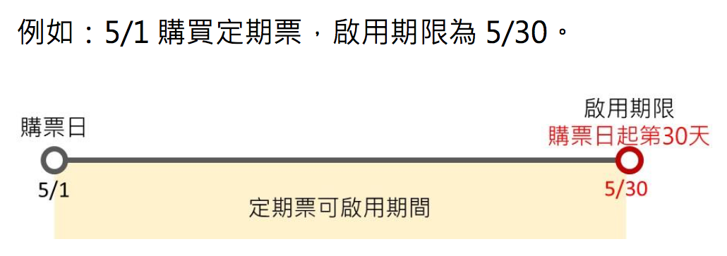 A:定期票自購買當日起 30 日內必須啟用,逾期未啟用,定期票即失效,持卡人可至臺北捷運車站詢問處申請辦理退票(須加收退票手續費)。