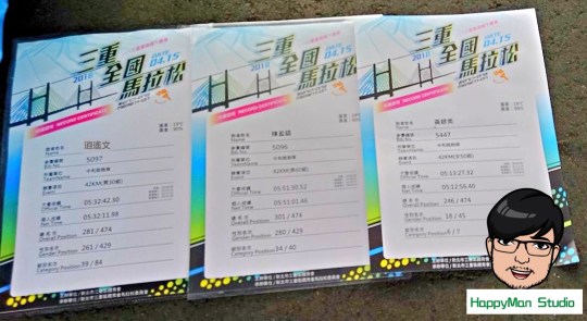 拿到完賽證書才知道,原來三重馬拉松參賽者不到500人啊~有人說是因為這一天同時有好多場賽事,像是風櫃嘴、新光馬、海風馬等等,特別是新光馬-我跑我盛開參賽者有萬人以上,專門給女子參加的賽事,連同攝影師也都被吸引過去!有一起去武陵農場賞櫻的詩萍,就是去跑半馬。還好跑到淡水看到中和路跑團的明均攝影師,抓了幾張特寫照好棒啊~