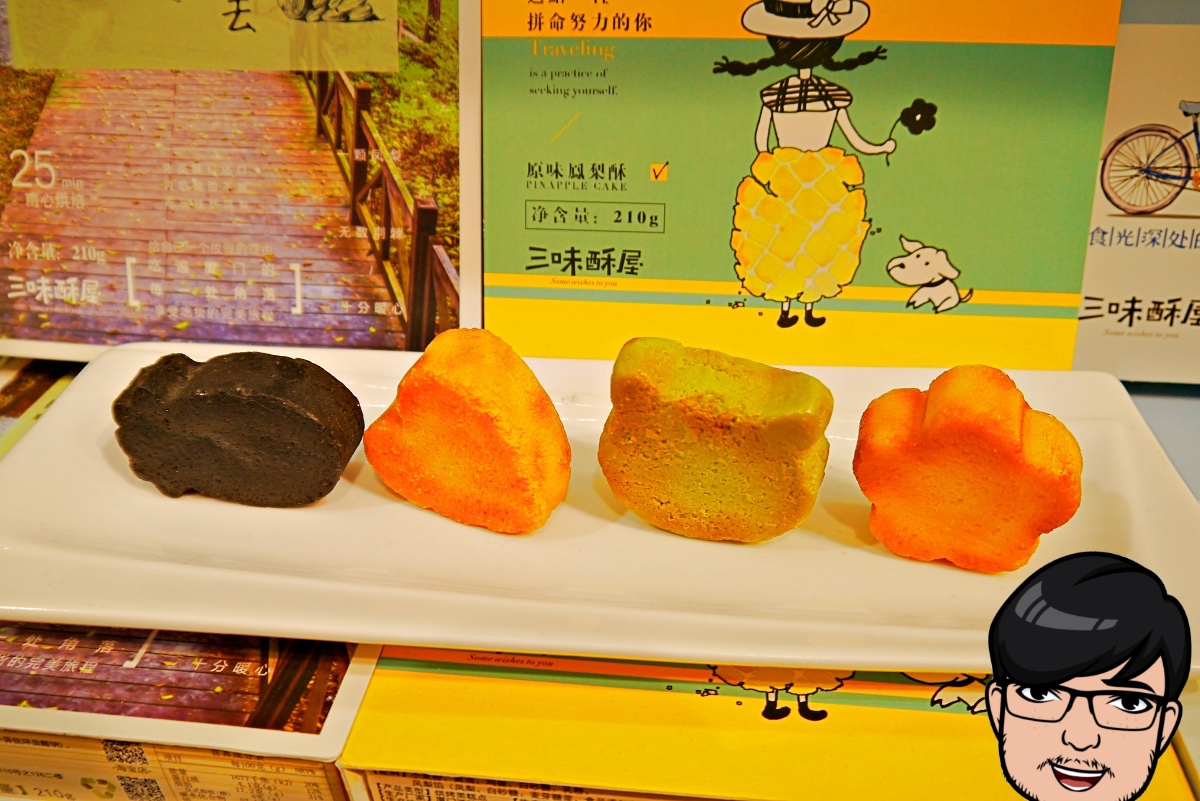 吃飽後我們的蔡博士想要買伴手禮,就跑到對面的三味酥屋,經他描述我心想就只是鳳梨酥,頂多像微熱山丘那樣精緻包裝。