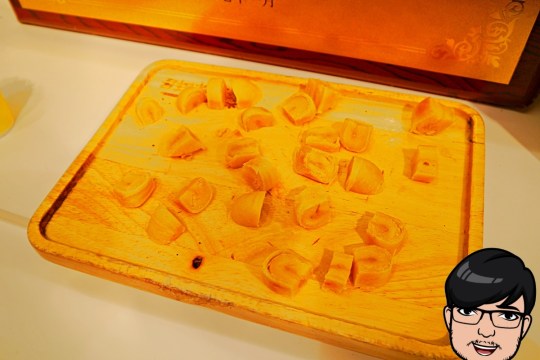總共有三種口味,傳統鳳梨酥、榴槤酥、黑色鳳梨酥。我試吃榴槤酥後讓我印象深刻!