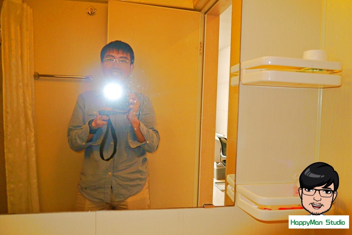趁著還沒弄亂房間前,將眼前所見的舒適床鋪、廁所拍攝下來。