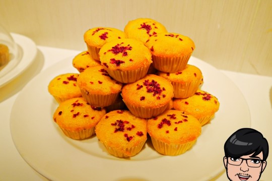 我挑了張白色圓桌,拿了些甜點來品嘗。