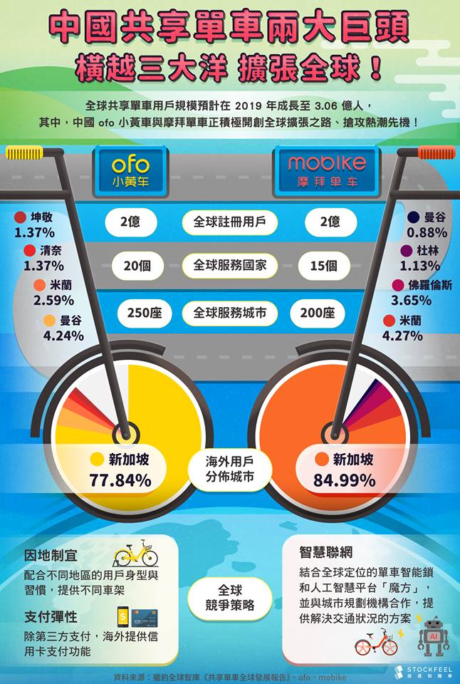 共享單車租用相當便利,至少看到有四個品牌(顏色):Mobike(演說提到中國有8百多萬輛)、Hello Bike、OFO等等,只需在微信、支付寶付款即可使用。有指定停車地點,不太會看到亂停放現象。