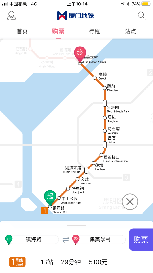 公車:百度地圖可查詢車班,介面會顯示費用。從集美學村站到集美公園站只要1元人民幣。