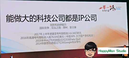 IP:中國太晚佈局智慧財產專利,歐美國家已行經非常多年。能做大的公司都是IP公司。小米掉過的坑:印度禁售、預繳、買專利。
