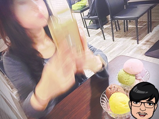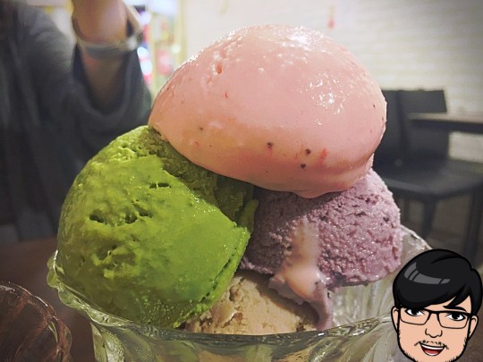 朋友看見我們來到,就熱情招呼我們,儘管外頭雨勢越來愈大,看到色彩繽紛的健康美味冰淇淋,整顆心跟著冰淇淋逐漸融化⋯⋯