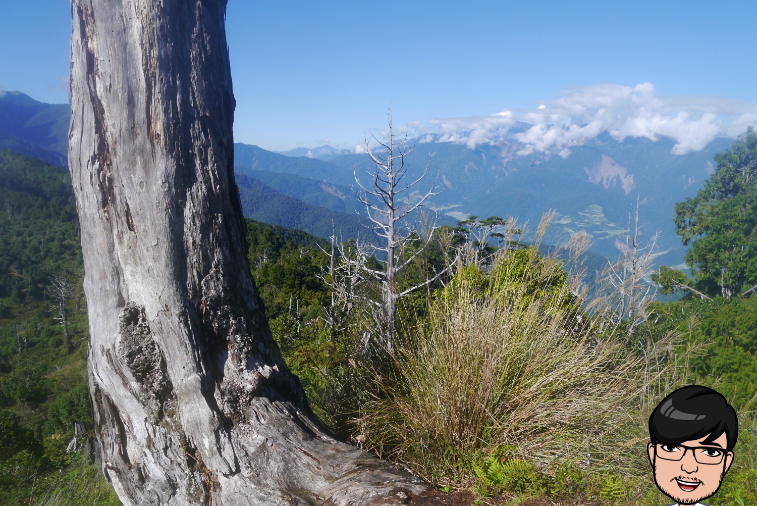 聽說民國88年有一群大學生來露營,一不小心就把加羅山的森林給燒了⋯⋯於是我們才有機會跟這棵白木(不是白目)合照!