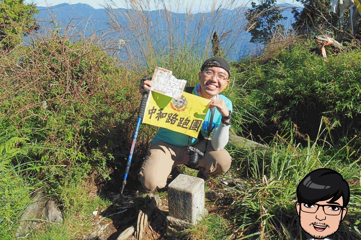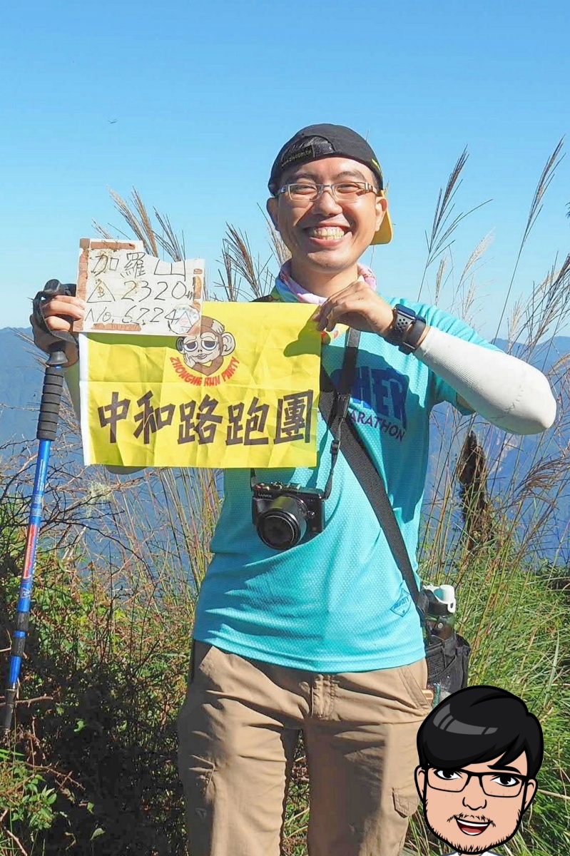 為了證明我真的有登頂加羅山2320公尺,我一定要拿著登頂牌配三角點。剛好是跟很愛團練的中和路跑團來,成員們隨身攜帶中和路跑團的旗幟,於是我以後就知道是跟哪些有緣人一起登頂!