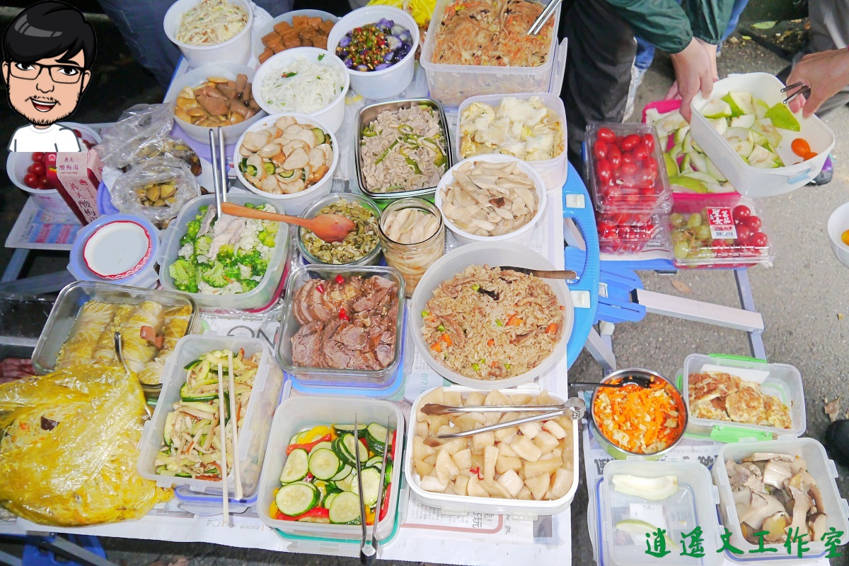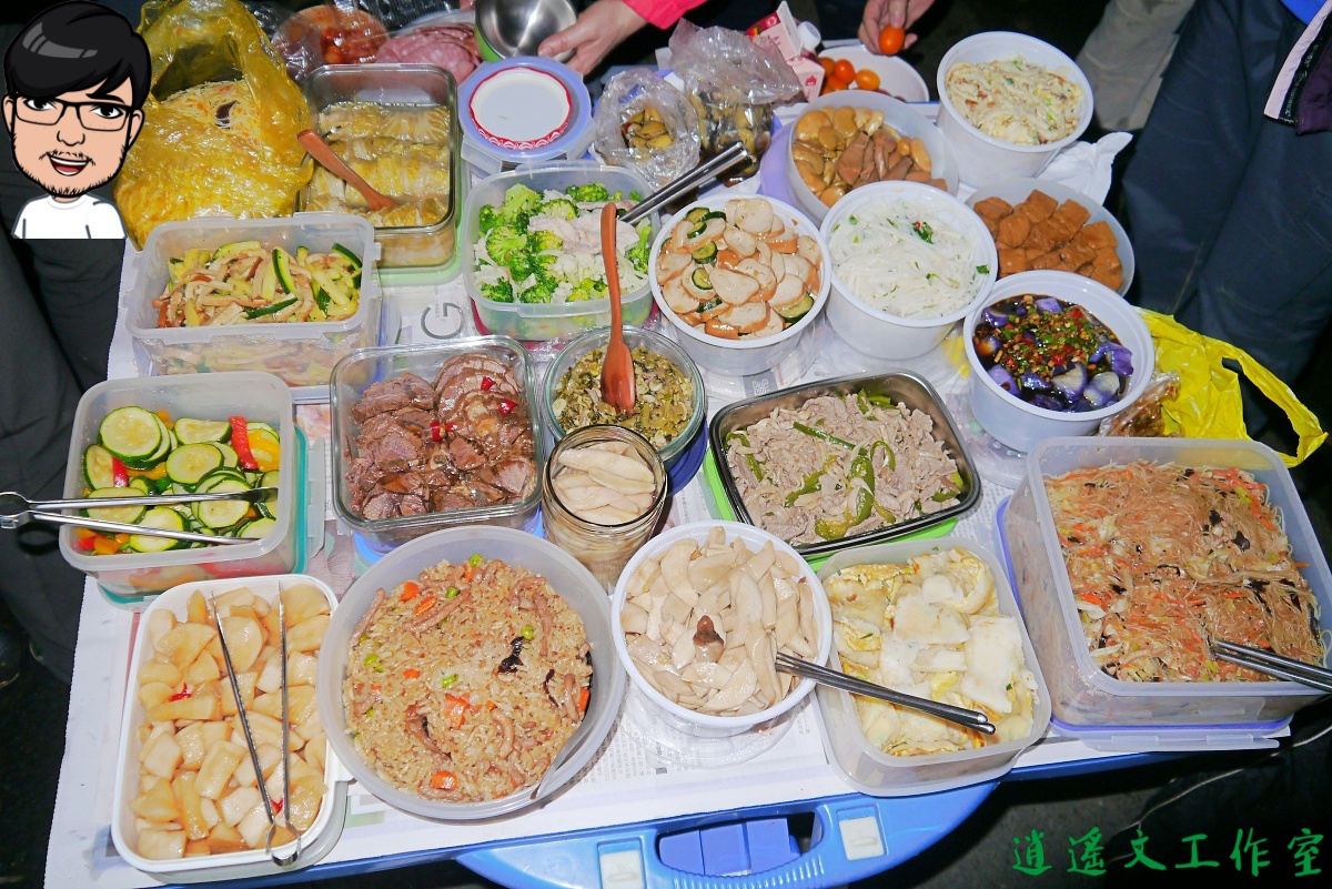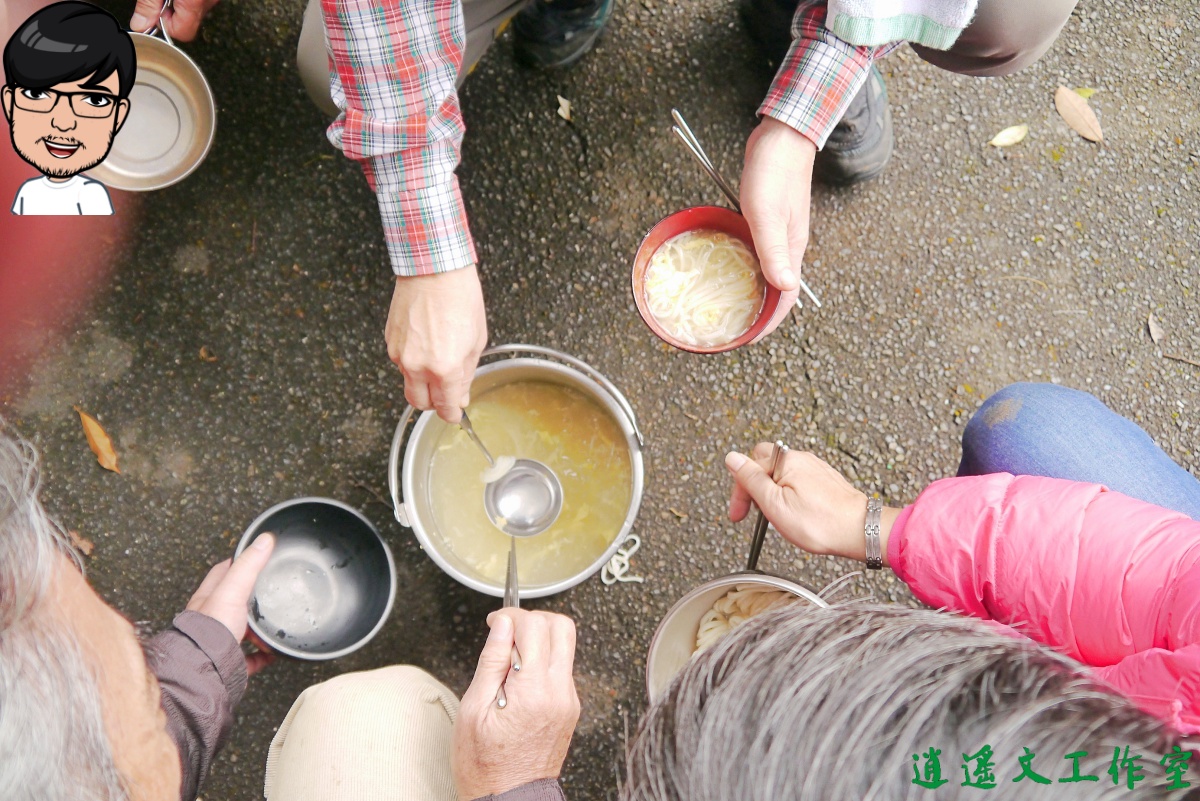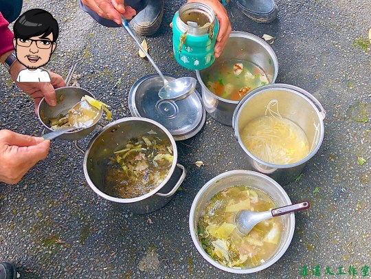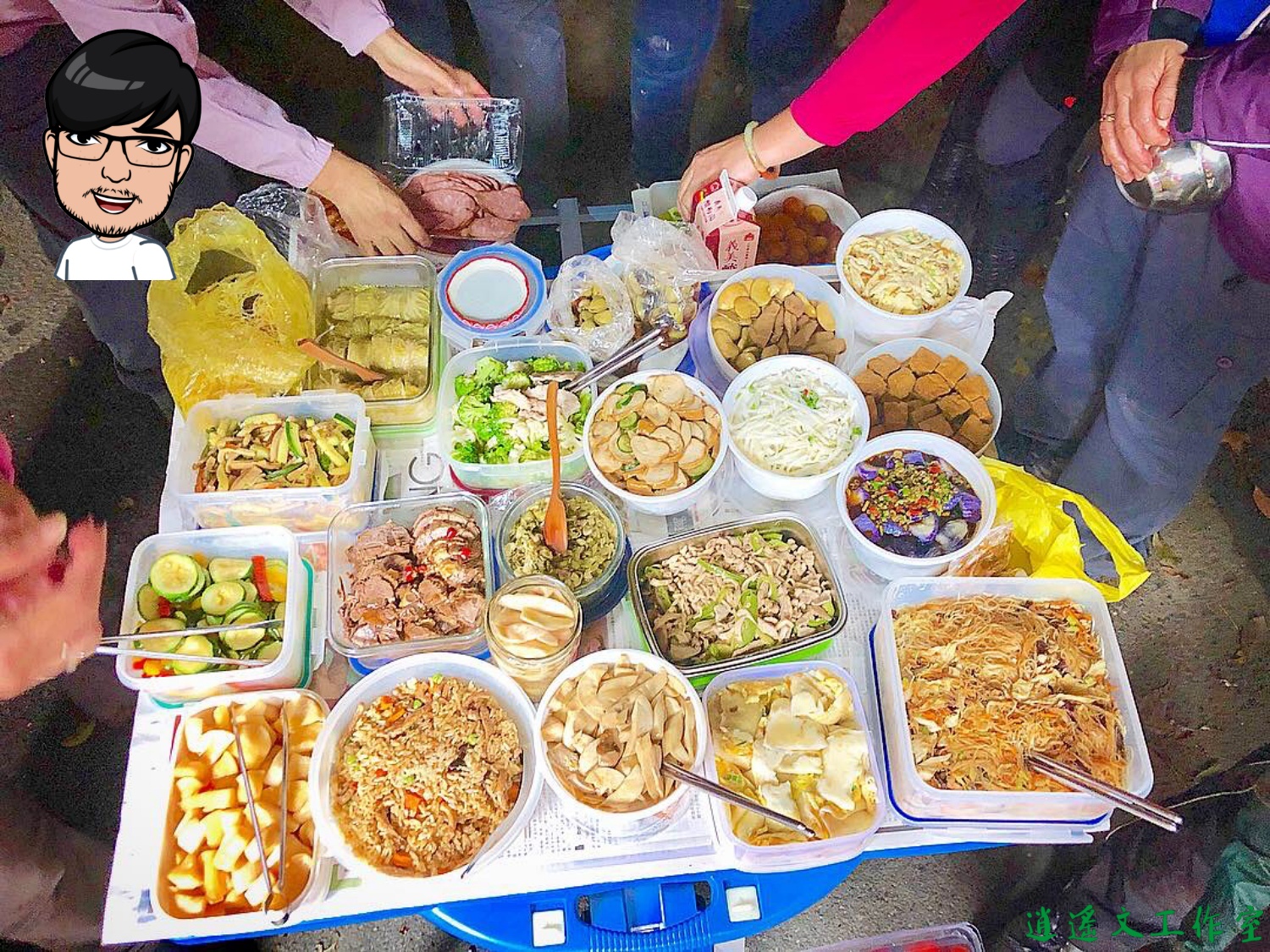 我以為會跟在油羅山那樣在山頂用餐,不過這次是爬完後在休息區,借用人在停車棚野餐,看著眼前至少30道菜還配4道湯,我和蘇菲雅吃得不亦樂乎,肚子和心情都相當滿足呢!
