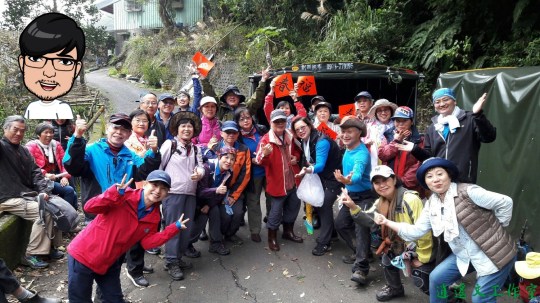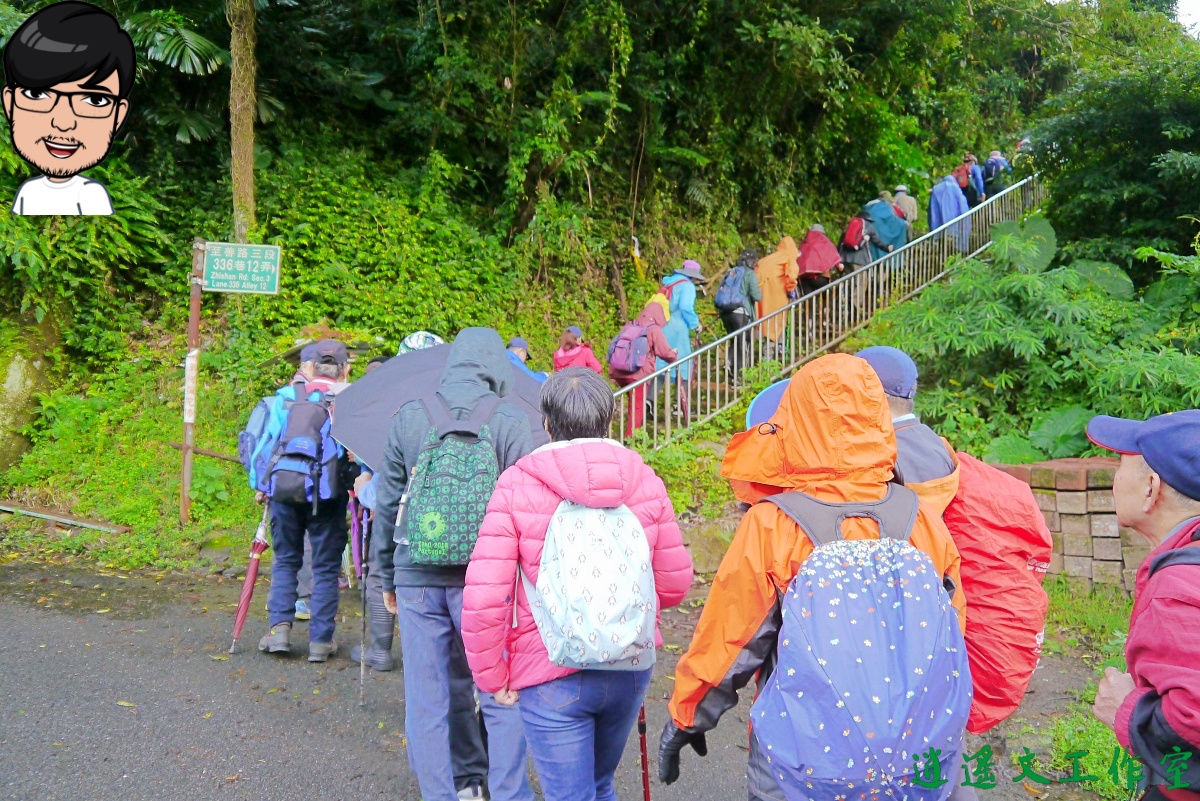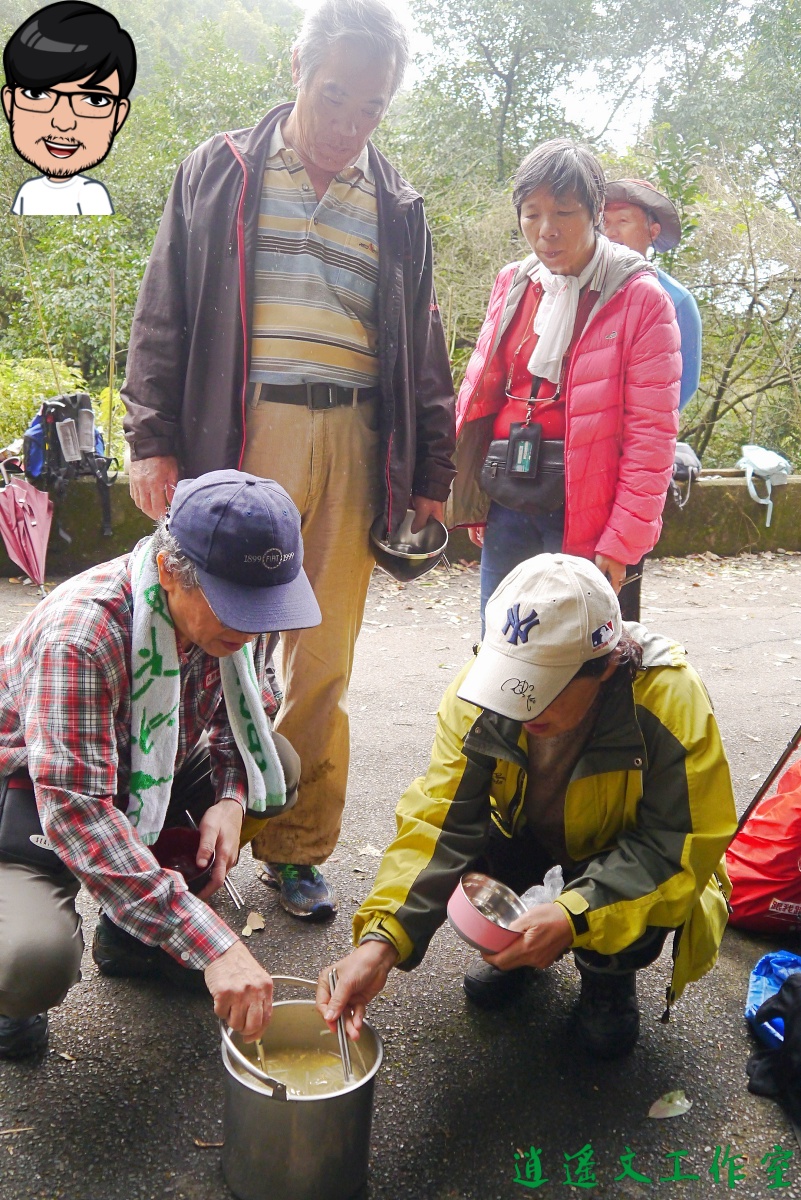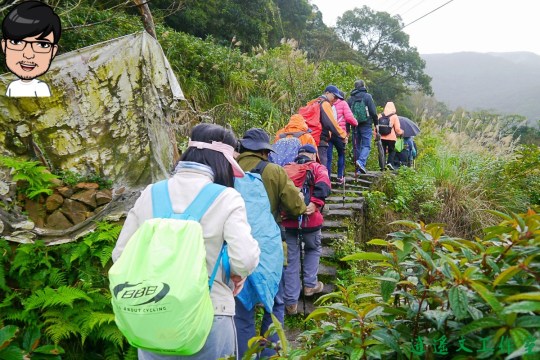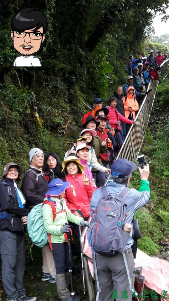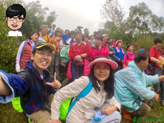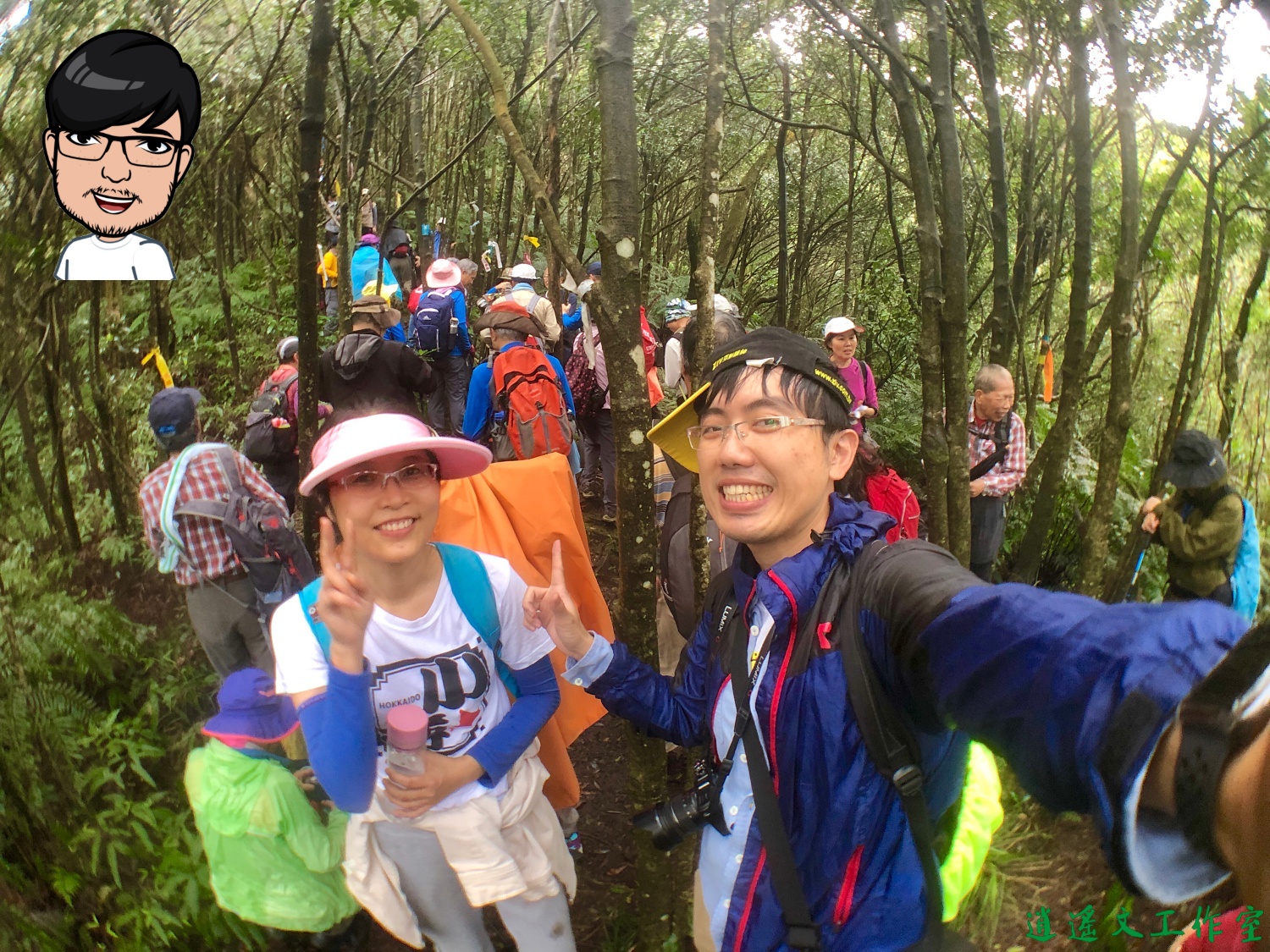 在平地以為天氣好,然而在山區千變萬化,之前下過雨讓地上泥濘不堪,爬走時要小心滑倒,王大哥在一處爬坡滑倒,幸好我在後頭幫忙扶著。另有一位60多歲山友,抬頭看時我覺得他要倒下,立馬扶助他不要摔太大力。