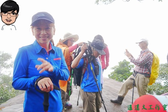 到一處大石頭平台,可惜一片霧茫茫,不然應該是可以遠眺遼闊的城市風情。